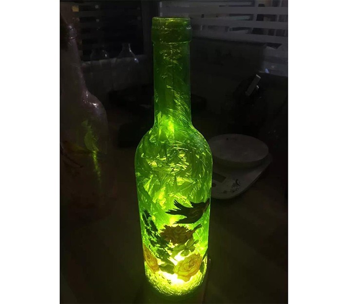 蒙砂酒瓶是在制品玻璃上,粘附一定大小面積的玻璃色釉粉,玻璃瓶廠經(jīng)過580~600℃的高溫烘烤,使玻璃色釉涂層凝結在玻璃外表,并顯現(xiàn)出具有與玻璃主體不同顏色的一種裝飾辦法。粘附玻璃色釉粉,可用排筆涂刷,亦可用膠輥滾涂。經(jīng)過絲印加工,能夠得到蒙砂面的樓空圖案。 其辦法是:在玻璃制品外表上,絲印一層由阻熔劑構成的圖案紋樣。